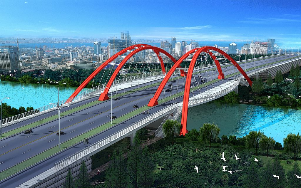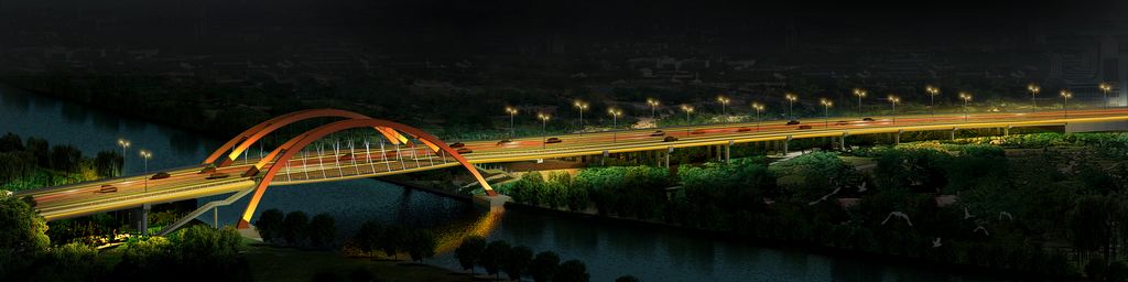 儀揚(yáng)河大橋位于儀揚(yáng)河南堤與南輔道連接線段,工程向北跨越儀揚(yáng)河。儀揚(yáng)河為人工開挖的運(yùn)河,往西南約3km與長江主航道相接,規(guī)劃為V級(jí)航道,通航凈空為45×5.0m。水位隨潮汐而上下波動(dòng),常水位為4.8m左右,相應(yīng)的水面寬度為60m。 本橋橋位處儀揚(yáng)河河道中心線與橋梁軸線的呈80°斜交。為保證通航凈空和減小橋梁對(duì)儀揚(yáng)河行洪的影響,本橋方案設(shè)計(jì)時(shí)考慮為一跨過河的方案。根據(jù)現(xiàn)場(chǎng)踏勘和相應(yīng)的測(cè)量成果,我院分別提供了不同的橋型方案布置,并做了方案比選,最終橋跨布置為2×25m空心板+60m預(yù)應(yīng)力砼提籃式系梁拱+30+4×25m空心板梁,橋梁總長為246.79m。