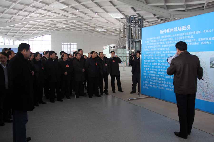2012年1月12日下午,參加揚州市人代會、政協會議的市人大代表、市政協委員一行視察了由我公司項目管理及監理的揚州泰州機場項目。