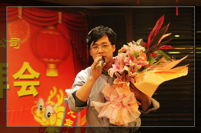 最后我們的董事長潘長海先生登臺,先鼓掌后欣賞,董事長為我們演唱了一首《傳說》
